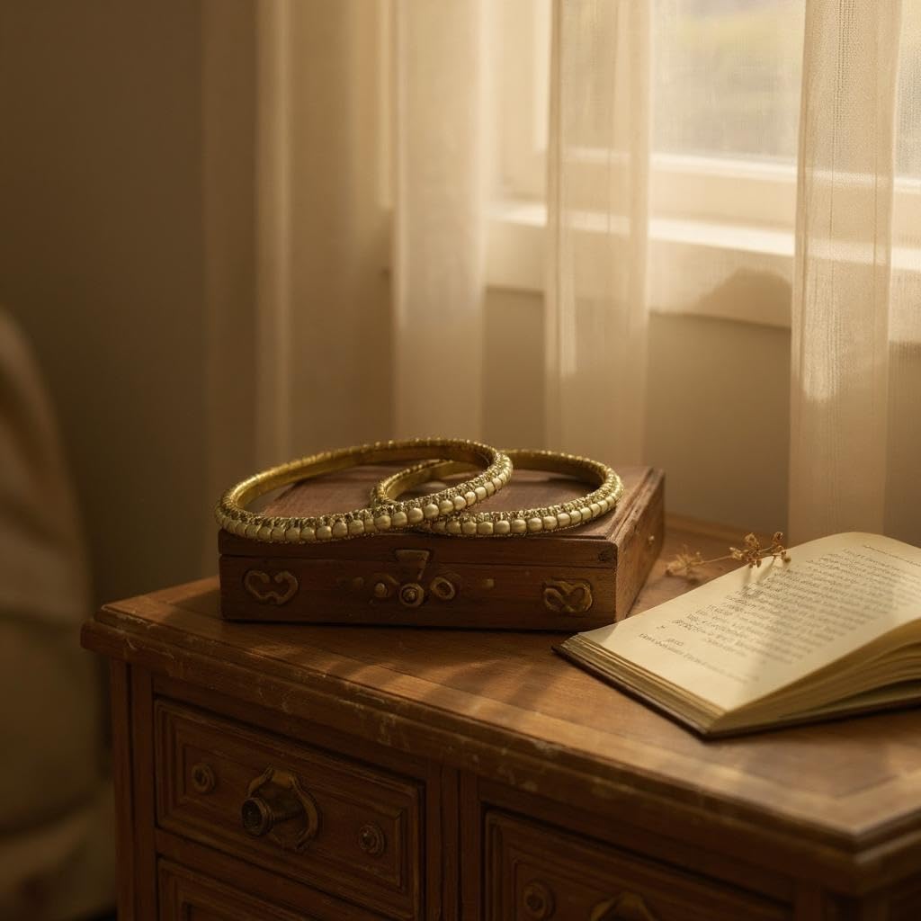 Elegant Pearl Beaded Bangles, Traditional Gold-Toned, Set of 2