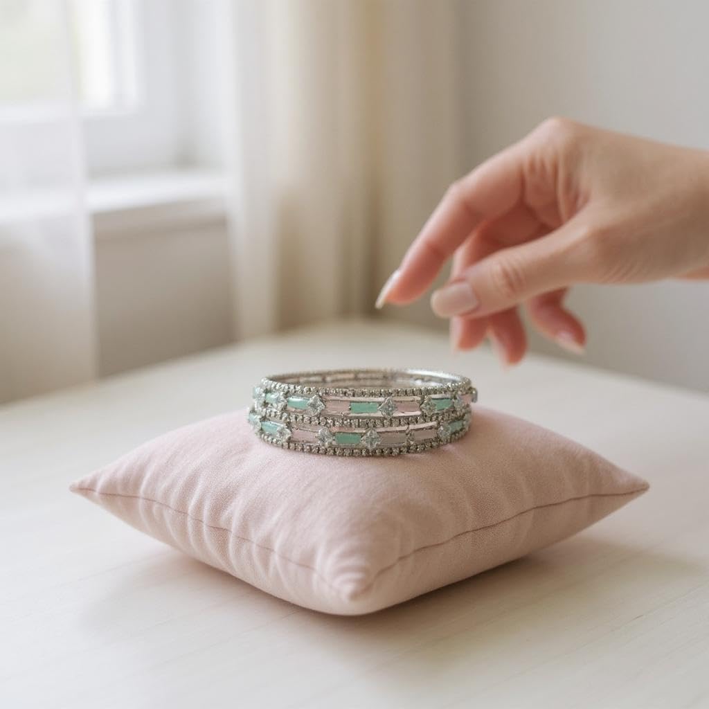 Crystal Rhinestone Bangles Set, Mint Green and Pink, Silver-Toned, 2 Pieces