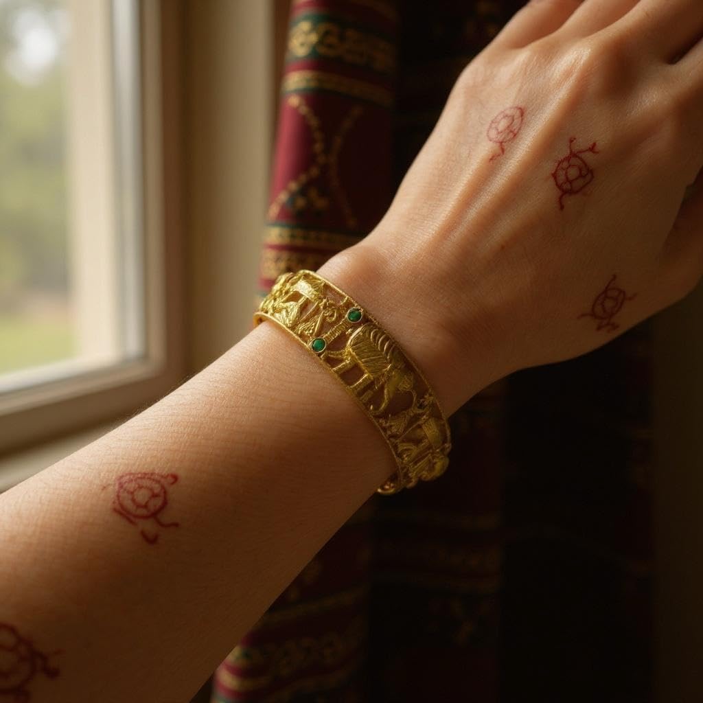 Crystal Embellished Gold-Tone Bangles, Set of 4, Traditional Design with Geometric Pattern