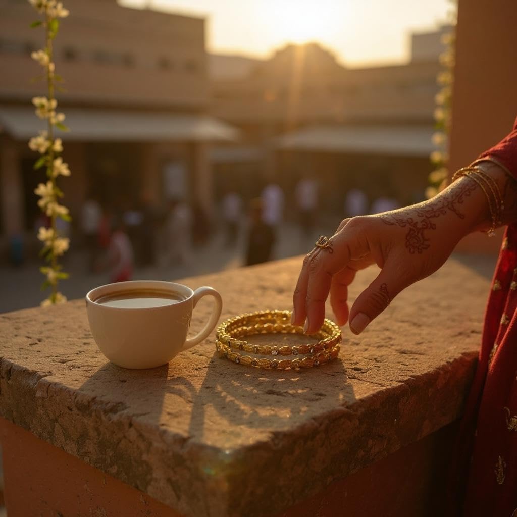 Traditional Gold-Plated Bangles with Crystal Stones, Set of 6, Ethnic Design