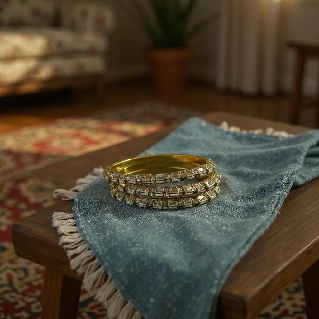 Traditional Gold-Plated Bangles with Crystal Stones, Set of 4, Antique Design