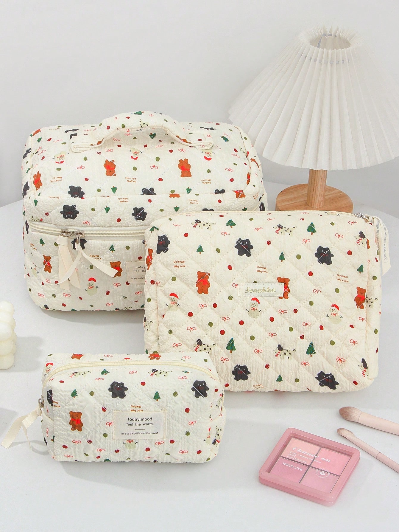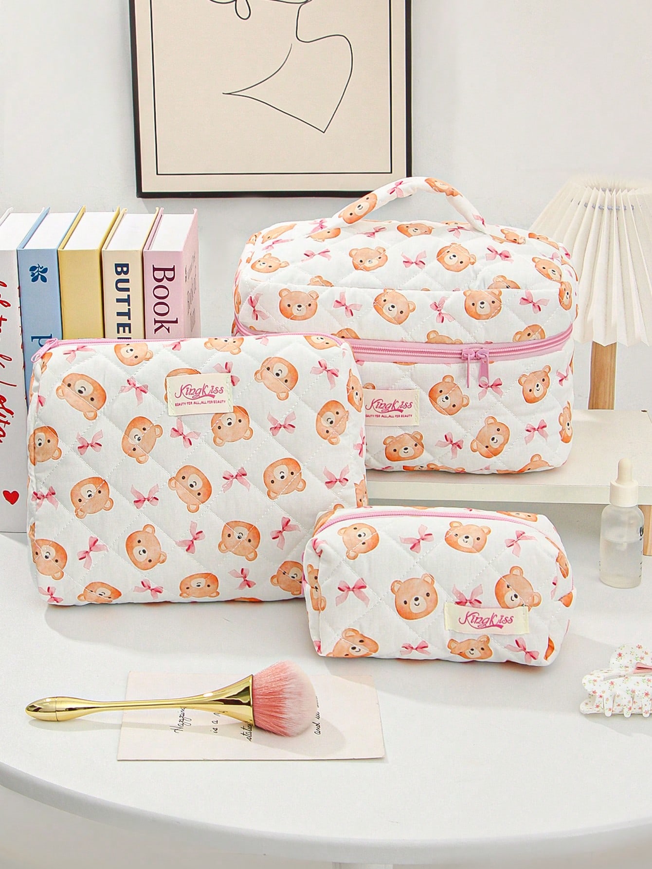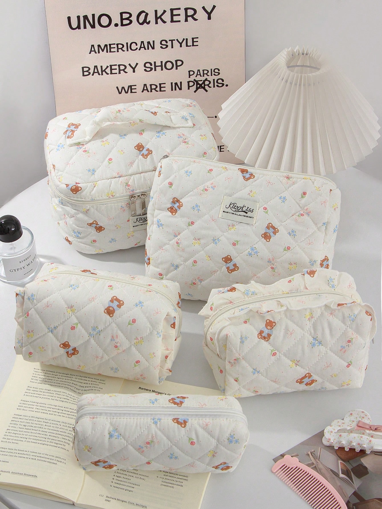 Cute Bear Floral Lovely Wash Bag For Travel Cosmetic Bag Set