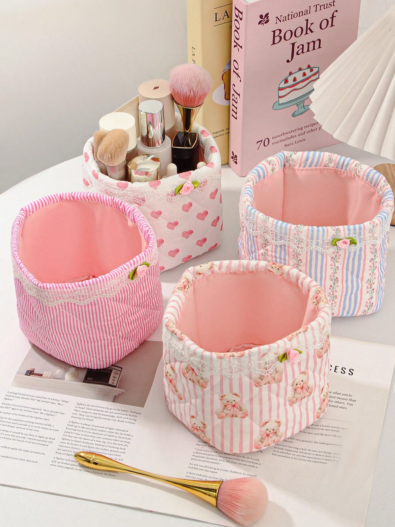Floral Heart Ruffle Wrinkle Design Quilting Girls Basket Set