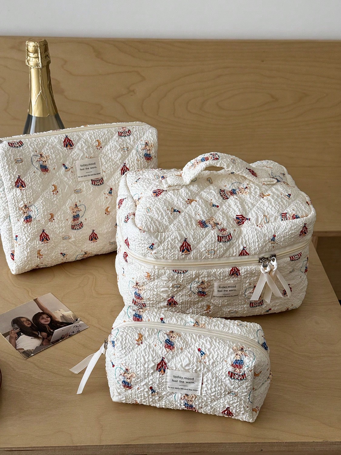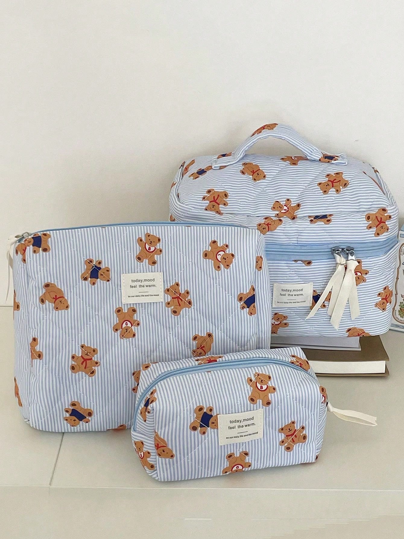 Blue Bear Pattern Large Capacity Multifunctional Cosmetic Bag