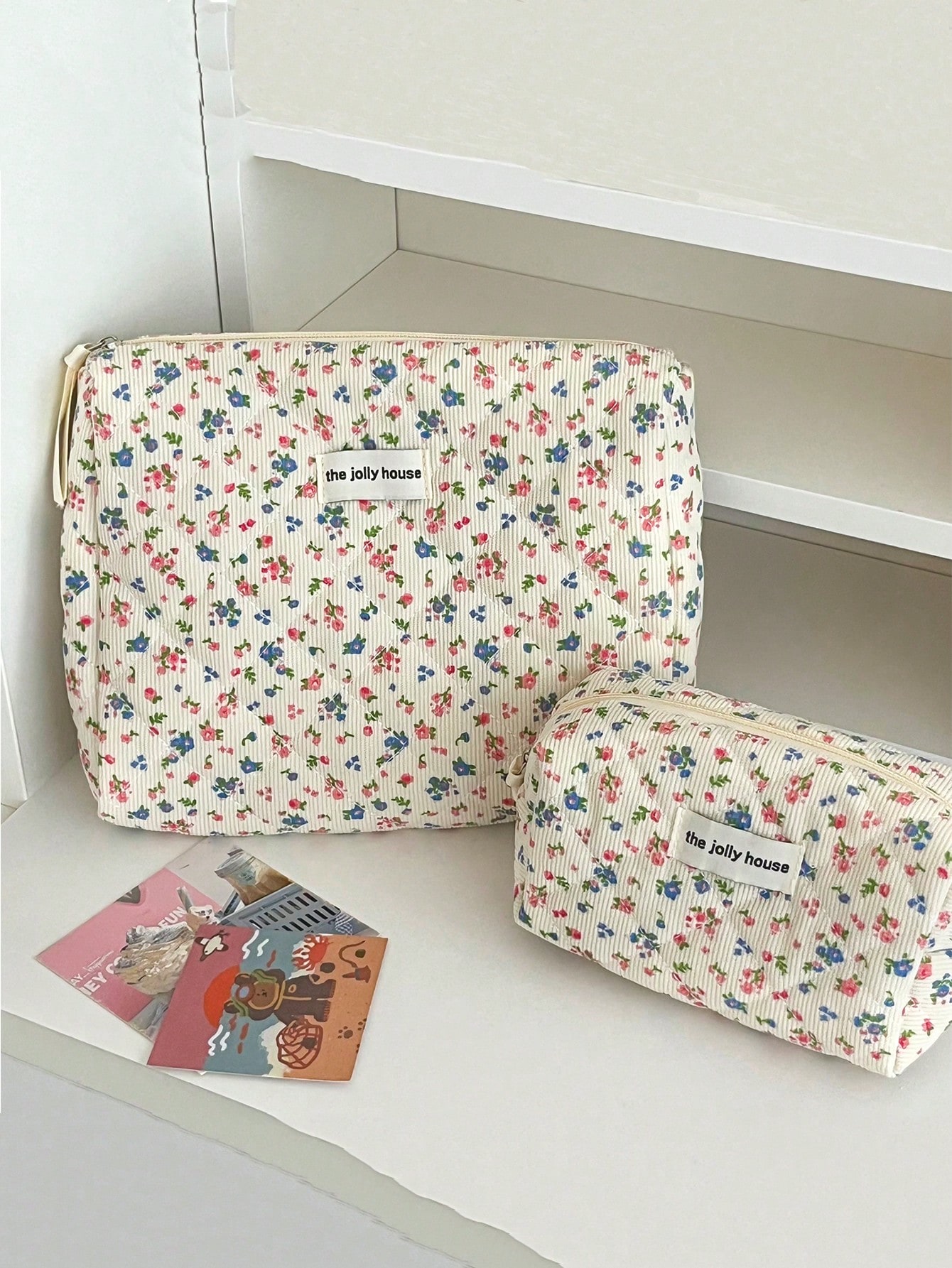 Floral Corduroy Makeup Bag Travel Cosmetic Organizer Gift for Women and Girls