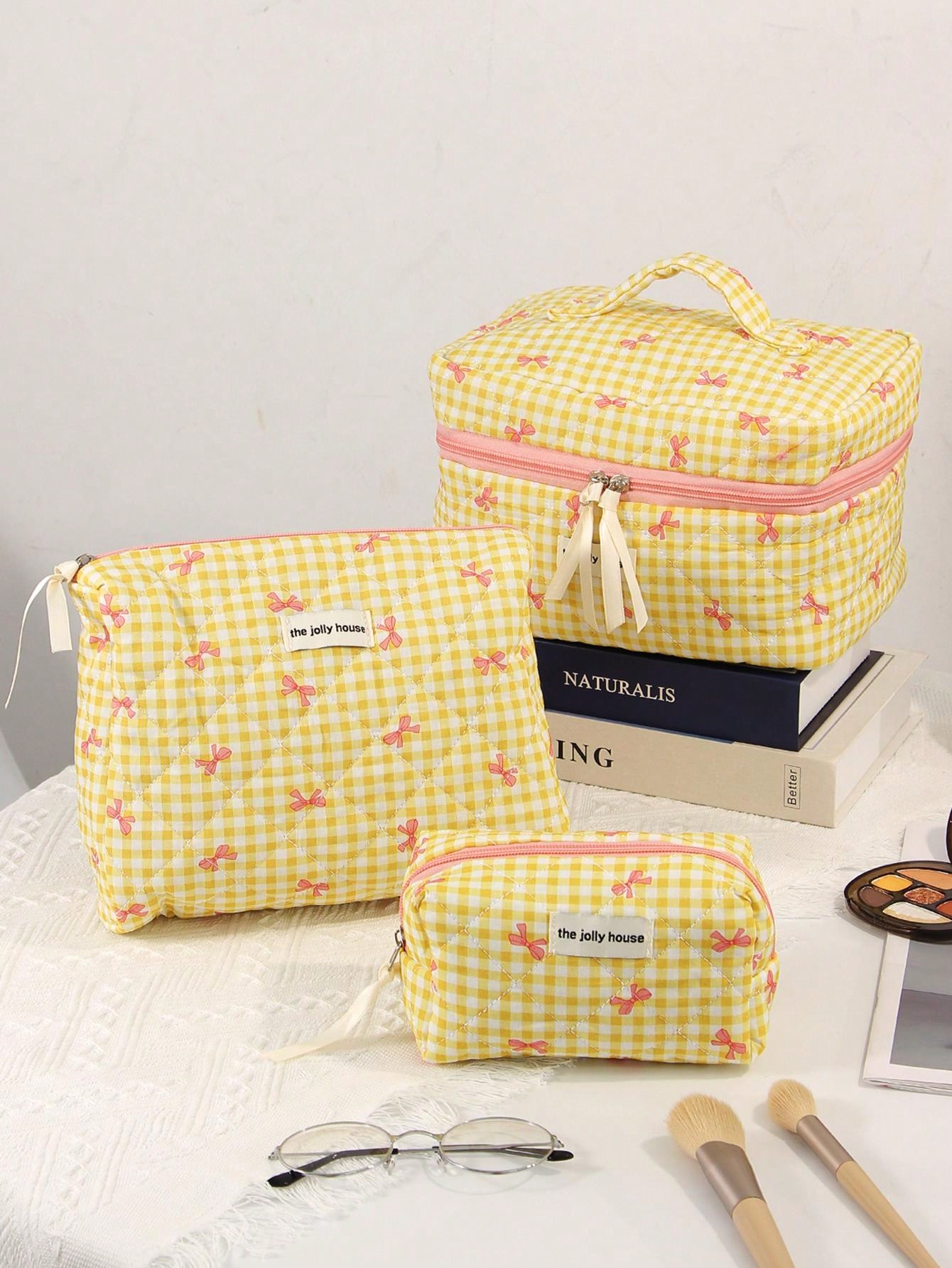 Cute Bow Knot Pattern Multifunctional Checkerboard Makeup Bag