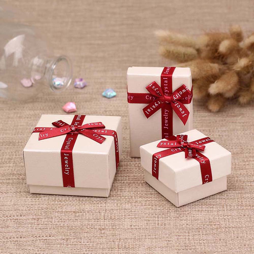 1pcs Small Bowknot Gift Boxes Romantic Jewellery Gift Box Pendant Case Display Paper Square Bowknot Ring Earring Necklace Box